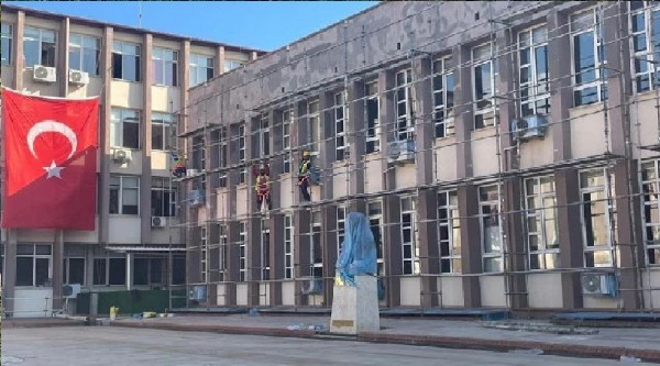 Aydın Adliyesi’nde, hizmet kalitesini artırmak ve daha güvenli bir yapı oluşturmak amacıyla dış cephe güçlendirme ve yenileme çalışmaları başlatıldı. İlk etapta A bloğun dış yüzeyinde yürütülen çalışmaların kısa sürede diğer cephelere de yayılması planlanıyor.